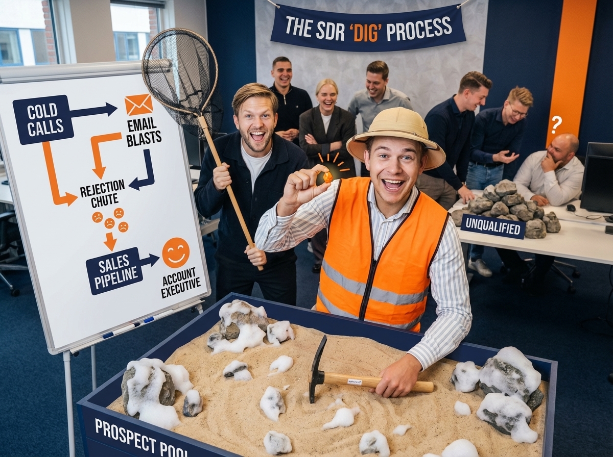 A Sales Development Representative (SDR) is responsible for the top of the sales funnel. Their job is to identify prospects, reach out, qualify them, and pass them to Account Executives when they are sales-ready. SDRs don't close deals - they focus entirely on filling the pipeline with high-quality opportunities. This is often an entry-level sales role where future closers develop their B2B sales skills. Effective SDRs are curious, persistent, and excellent at building rapport in short conversations.