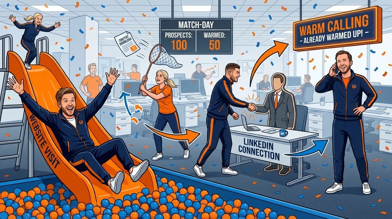 Warm calling sits between cold calling and inbound leads. You call people who haven't explicitly asked for contact, but who have shown signals of interest. For example: someone downloaded your whitepaper, liked your LinkedIn post, or visited your website multiple times. This context gives you a much better opening than "I'm calling randomly." You can start with "Saw you read our article about X last week..." or "We're connected on LinkedIn and I saw that you..." Warm calls have a 4-7x higher conversion rate than cold calls because there's already some form of trust or interest. It does require your systems to be in order: your CRM must track who downloaded what, your marketing automation must track website visitors, and your LinkedIn Sales Navigator must show engagement. The best warm callers do 2 minutes of research before calling: they check the LinkedIn profile, see what content the prospect viewed, and prepare 2-3 openings.
